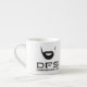 Taza blanca del café express de DFS con el logotipo del sitio.
