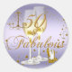 50 y fabuloso Pegatina de cumpleaños. Elegante lámpara de araña dorada y champán.