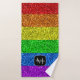 Personaliza el baño de lujo falso y brillante decoración de la toalla de baño con tu nombre inicial. Maravillosa bandera LGBT con vibrantes chispas purpurinas rojas, naranjas, amarillas, verdes, azules y violetas. *foto de chispas, no purpurina real!