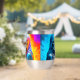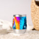 LGBTQIA+ Dos esqueletos acurrucados bajo una manta con fondo de arcoiris.