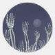 Pegatinas de Halloween mostrando esqueletos con las manos en el aire.
