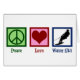 Esquí de agua de amor por la paz. Un regalo de esquí acuático con un signo de paz, corazón y esquiador.