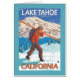 Esquiadora Cargando Esquís de Nieve - Lake Tahoe, California - Vintage Travel Poster fue creada en 2007. Esta imagen muestra escenas del Lago Tahoe, CA.