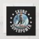 El divertido ilustracion deportivo invernal para esquiar, muestra gráficos de montaña y una mujer en esquís, y el dicho: el esquí es mi superpotencia y pequeñas estrellas. Este es el regalo perfecto para todos los amantes del esquí, las montañas y los deportes de invierno.