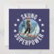 El divertido ilustracion deportivo invernal para esquiar, muestra gráficos de montaña y una mujer en esquís, y el dicho: el esquí es mi superpotencia y pequeñas estrellas. Este es el regalo perfecto para todos los amantes del esquí, las montañas y los deportes de invierno.
