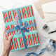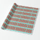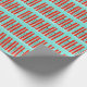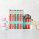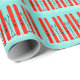 Esquíes rojos brillantes con fondo azul con Navidades de nieve envolviendo papel.