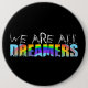 Ilustracion digital original con arcoiris y horizonte de las ciudades estadounidenses para The Dreamers con botón colosal negro. Puede cambiar fácilmente el texto "todos somos" (color de fuente, tamaño y posición) haciendo clic en el botón personalizar. Camiseta y más...