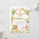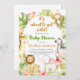 Esta es una invitación graciosa para una ducha de bebé que incluye bonitos animales de safari con vegetación tropical fresca - neutra de género