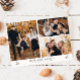 Elegante tarjeta de plantilla de fotos de Navidades con un texto que dice "Esta es la estación para ser alegre" en la parte inferior con un ilustracion . 3 fotos en la parte delantera y 1 en la parte trasera.