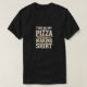 El diseño presenta letras en negrita y en bloque con la frase "ESTA ES MI CAMISETA DE PIZZA" en un estilo vintage. Una rebanada de pizza de pepperoni se integra juguetamente en la palabra "PIZZA", añadiendo un toque divertido y caprichoso.
