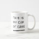 Estilo: -Esta es mi taza de cuidado Mug Dale una taza hecha a pedido de Zazzle a alguien especial, o tratate un diseño que te traiga alegría o te haga reír. Crea tu propia taza con foto, hazte con una de nuestras tazas divertidas, personaliza uno de nuestros diseños con tus iniciales o exprésate como quieras con nuestros más de 10 millones de diseños. Disponible en 11 onzas o 15 onzas Dimensiones: 11 onzas: 3,2" D x 3,8" H 15 onzas: 3,4" D x 4,5" H Microondas y lavavajillas Seguridad Fuerte, construcción de cerámica Cumple los requisitos de la FDA para la seguridad de alimentos y bebidas Impresa a petición en Reno, NV