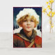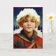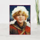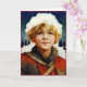 Esta es una tarjeta de Navidad para un niño, que presenta la imagen y la descripción de un joven niño escandinavo de tiempos antiguos: