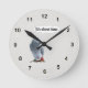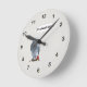Un loro del gris africano se muestra en este reloj de pared chistoso que dice, "es sobre tiempo"