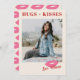 Perfecto para un novio, esposo o amante, esta coqueta tarjeta de El día de San Valentín inspirada en el Polaroid presenta una gran foto con un ilustracion de beso dibujado a mano. El saludo "Abrazos + besos" se coloca de forma destacada en la parte superior de la tarjeta en un audaz tipo de letra serif, mientras que un tipo de letra cursiva moderno se utiliza para el nombre del cliente que aparece a continuación. En la parte posterior de la tarjeta se muestra un patrón de beso coordinado.