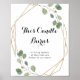 Esta señal de caligrafía geométrica dorada esta vela arde es perfecta para una boda rústica. El diseño presenta ramas y hojas de eucalipto verde botánico dibujadas a mano que adornan un marco geométrico elegante.