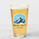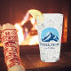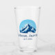 Vidrio de cerveza de Méribel Meribel Francia con una preciosa montaña azul con un fondo soleado y la opción de añadir texto.