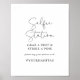 Esta señal de estación de selfie con caligrafía simple y elegante es perfecta para una boda rústica o una despedida de soltera. El diseño simple y elegante cuenta con tipografía de letra cursiva clásica y elegante en negro y blanco. Personalice la señal con su hashtag de boda.