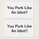 ¿Cansado de que la gente aparque como idiotas? Dejar esto en el auto de la siguiente persona que tome dos aparcamientos, parques muy cerca de usted o parques en una zona sin estacionamiento.