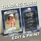 ¡Puntee en grande con esta tarjeta de intercambio de béisbol personalizado que presenta un diseño audaz de estadio azul y plata! Perfecto para jóvenes atletas, equipos deportivos o fans del béisbol, esta plantilla de tarjeta de intercambio editable le permite tener estadísticas del jugador personalizar, nombre del equipo y foto para un aspecto profesional y coleccionable. Ya sea para regalos de fin de temporada, keepsakes o recuerdos personales, esta carta es imprescindible para cualquier estrella en ascenso.