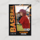 Crea una tarjeta única y personalizada de intercambio de béisbol para celebrar a tu jugador favorito. Este moderno diseño presenta un esquema de color negro y Naranja, un llamativo marco fotográfico y un espacio para todas las estadísticas importantes.