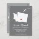 Invitación móvil | Estado WASHINGTONMinvitación moderna en movimiento con el estado de WASHINGTON, con el corazón rojo y el avión sobre un fondo gris. El color de fondo se puede cambiar fácilmente haciendo clic en personalizar y luego en personalizar para ver nuestro selector de color. ¡Desde ahí también puedes mover el avión y el corazón! Póngase en contacto con nuestra tienda si necesita ayuda o necesita otro estado.