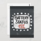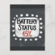 "Estado de la batería 15%" es un lindo diseño de texto en gris con texto en negro y rojo, junto con una forma de acento blanco y puntos caprichosos de textura blanca que lo rodean.