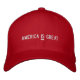 ¿Hacer que Estados Unidos vuelva a ser grande? Ahora puedes dejar que Donald Trump y sus seguidores sepan que "Estados Unidos es grande" con esta clásica gorra roja de béisbol de hilo blanco. Elija entre 3 estilos gorra, elija entre muchos colores gorra y de hilo y tome el suyo hoy mismo.