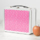Este divertido diseño de inspiración retro presenta pequeños óvalos rosados de caramelo que se repiten en un fondo blanco creando estallidos cóncavo rectangulares.