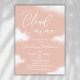 Celebra que la madre esté con una elegante invitación a la ducha de bebé con temas de nubes que combina elegancia y encanto. El diseño crea un ambiente minimalista y encantador para el evento, para un día lleno de amor, alegría y momentos apreciados. Utilice las herramientas de diseño para personalizar del texto y las fuentes. Navegue por nuestra colección de Baby Shower en color Cloud 9 Pink para obtener una decoración fiesta y elementos personalizados que coincidan.