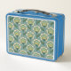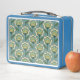 Este modelo moderno de los mediados de siglo ofrece diseño floral verde azulado y amarillo.