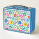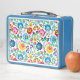 Características del este diseño del arte popular un estampado de flores brillantemente coloreado.