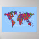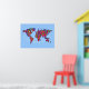 Idea decorativa de mapas del mundo para las paredes. Una colorida pintura digital de una planisfera - el color de fondo azul es el personalizable