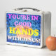 ¡ESTÁS EN BUENAS MANOS CON JESÚS! es una imagen que da gran inspiración a los cristianos. ¡Esta imagen es la manera más segura de hacer saber a otros quién es tu Salvador!... ¡Y a quién pones tu seguridad en manos de! Pida su copia de la lonchera con esta hermosa imagen religiosa en él hoy!