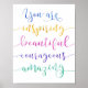 Diseño de tipografía caligráfica con felicitaciones galore para tu amigo o ser querido. El tipo dice: "Eres inspirador, hermoso, valiente, asombroso en una variedad de colores de pintura al estilo de las acuarelas.