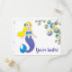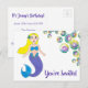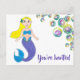 Tarjeta postal con ilustración original a marcador de una hermosa sirena rubia con un traje azul y morado, rodeada de burbujas coloridas. Simplemente personalice el texto para una invitación de fiesta o evento única.