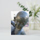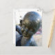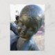 Envíe una nota a alguien en la postal de una estatua angélica ubicada al final de La Rambla en Barcelona, España.