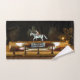 Estatua De Caballo De Bailarina Nativa Saratoga, Toalla De Mano. FOTOGRAFÍA. La estatua del bailarín nativo y su jockey Eric Guerin dan la bienvenida a los visitantes de Saratoga Springs, Nueva York. La estatua se encuentra en el Parque del Congreso, justo al final del circuito de Saratoga. Personalizable completo; hazlo tú mismo.
