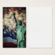 Hermosa imagen compuesta de la Estatua de la Libertad contra la bandera de Estados Unidos y fondo de fuegos artificiales. Excelente imagen patriótica para su tarjeta de visita.