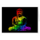 Un gráfico estilizado de una estatua de buddha en colores arcoiris.