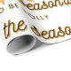 Este documento de envoltura muestra las palabras "Esta temporada es alegría" en un original y nítido tipo de letra impreso más el contorno de oro de las letras negras con un regalo de Navidades de oro como envolver cinta y arco en este tema y estilo de Navidad. Todos los papeles de embalaje se ofrecen en cuatro tipos de papel premium y cinco tamaños diferentes. Tiene una superficie más suave y un acabado más suave con impresión de borde a borde de color en papel mate de peso de texto de 60 libras. Ideal para todo tipo de envolturas de regalo para cualquier cosa, desde cumpleaños hasta graduación, bodas hasta aniversarios.