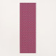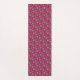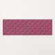 A long, rectangular piece of fabric with a repeating pattern of small, intricate floral designs in blue and pink on a deep red background.