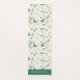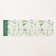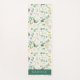 Elegante alfombra de yoga personalizado con un patrón de flores de marfil acuarela, vegetación y falsas hojas de Relieve metalizado dorado. Personalice la alfombra de yoga floral blanca de marfil añadiendo su nombre o texto personalizado en una sencilla letra blanca. La alfombra de yoga personalizada revierte a un sólido fondo verde.