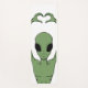 Vivid green alien forming a heart with arched arms against black, blending sci-fi whimsy with playful charm. Bold contrast, perfect for space fans and quirky casual outfits.