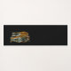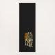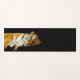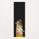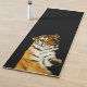 Una alfombra negra de yoga con una fotografía de un tigre durmiendo de un lado y un despierto, de pie tigre del otro lado.