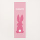 Estera animal linda personalizada silueta rosada de la yoga del conejito. Silueta de un conejito azul lindo con la cola blanca mullida. Personalice con nombre en blanco. Fondo rosa claro. Más en www.SamAnnDesigns.com