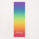 Es un diseño colorido y brillante de yoga mate. Tiene colores arcoiris degradados que le dan un aspecto divertido y vibrante. También tiene un monograma de texto de guión de tipografía que usted puede fácilmente personalizar con su nombre y crear su propio diseño.