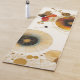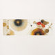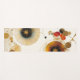 Composición abstracta con círculos interconectados y patrones radiantes en tonos dorados, azules y rojos, que evocan un tema cósmico o celeste con un toque artístico moderno.