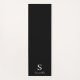Black modern personalized yoga mat. Easy to change the text. White monogram and name on a black background.