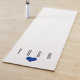 Una minimalista alfombra de yoga en blanco con la palabra YOGA al final con un pequeño corazón azul.