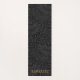 Patrón botánico Boho Black Gray Yoga Mat con "Namaste" en la parte inferior.